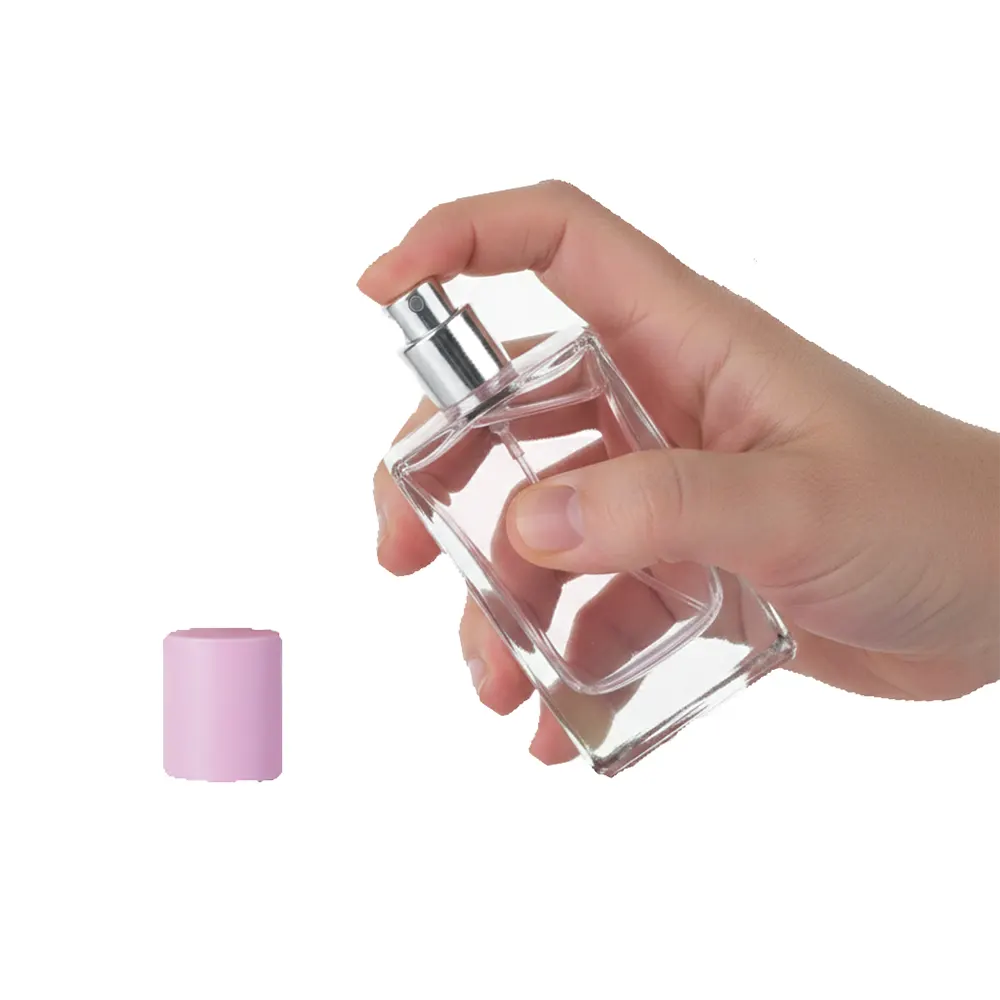 - Contrasto del cappuccio colorato: Tappi viola o gialli in contrasto con il vetro trasparente? Un tocco di stile immediato per il packaging del tuo profumo.
