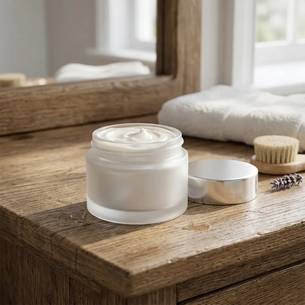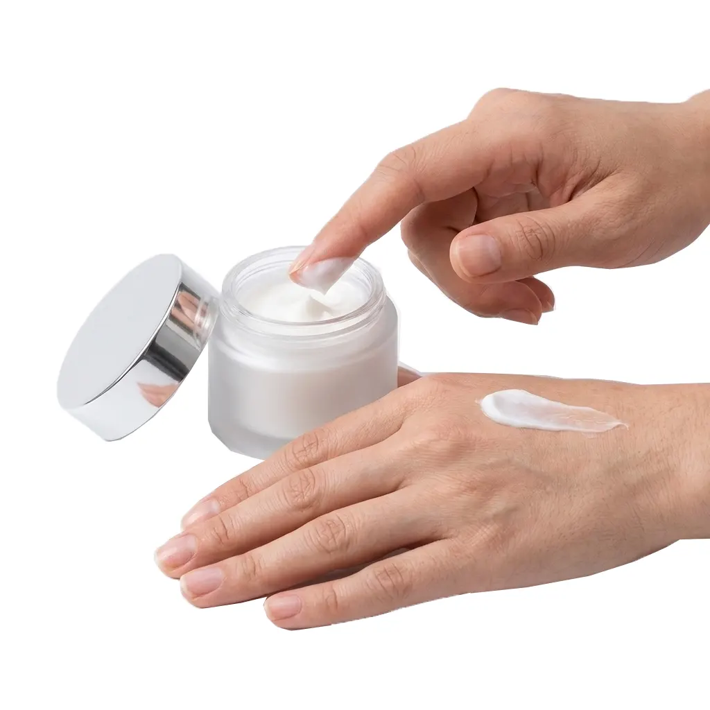 オーストラリアのスキンケアブランドの一つが、当社の1オンスフロストガラス製クリームジャーを選定しました。カスタマイズ情報によると、クライアントは二重構造のキャップを注文しました。具体的には、PP素材の内層をアルミニウム製の外層で覆った構造です。さらに、ジャーの内底は、使用後に製品が残る量を減らすために、わずかに凹んだ形状に加工されています。キャップの蓋については、従来の印刷ではなく、レーザー彫刻でブランド名を表示することを選択しました。