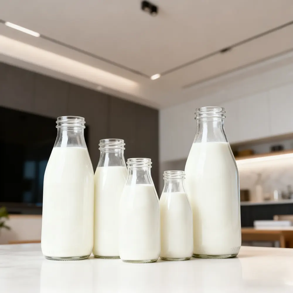 Your dairy brand deserves bottles that tell a story—not just hold milk. We craft glass milk bottles that make every pour feel fresh, farm-to-table. The milk glass bottle blend classic charm with modern durability—perfect for milk, juice, or smoothies. Get reusable that customers actually want to keep.