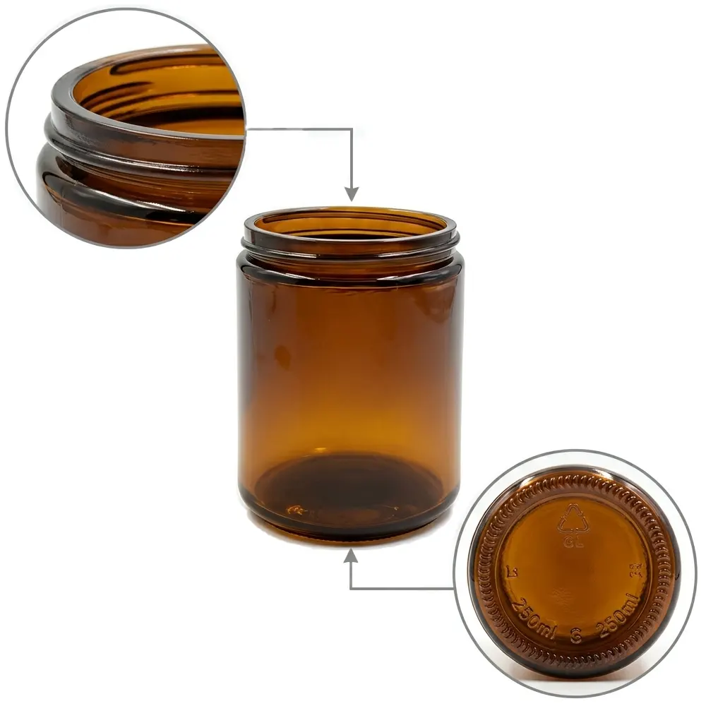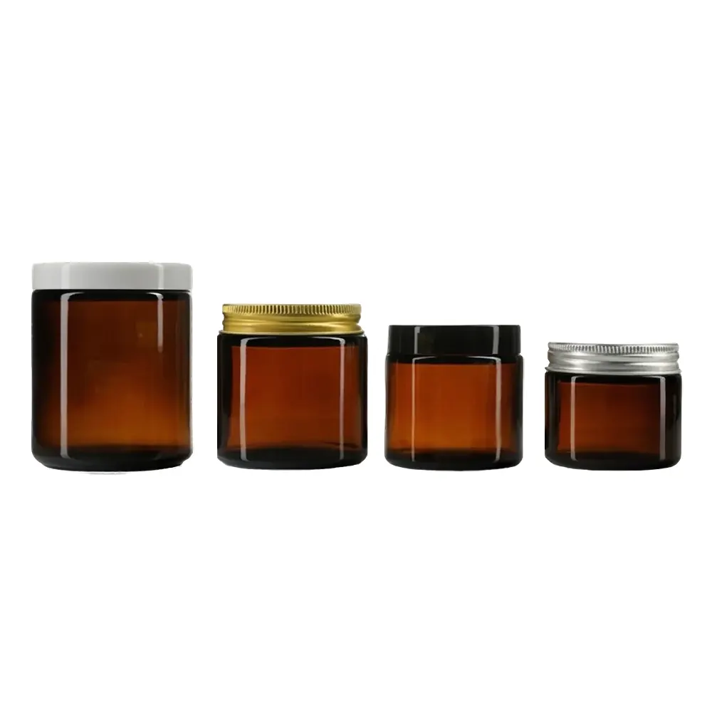 | Material | Amber glass, various lid materials (plastic, metal) |
