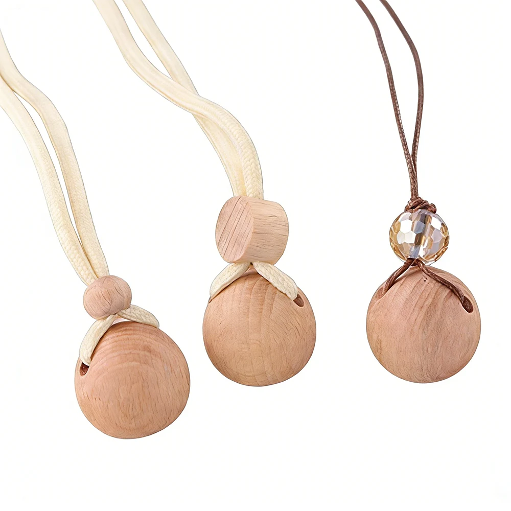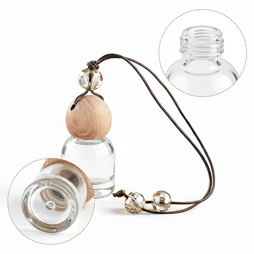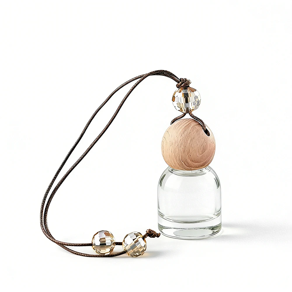 Elegant empty car diffuser bottles with wooden cap and crystal cord, perfect as car air freshener diffuser bottles for essential oils, factory direct.