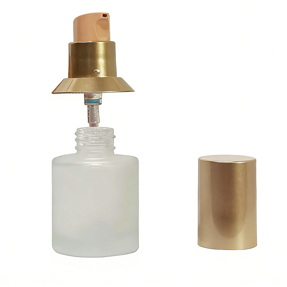 - Luxury Gold Pump: It is a gloss gold metal pump, that is opposed to the frosted bottle, it is a luxury, but not a luxury overkill.