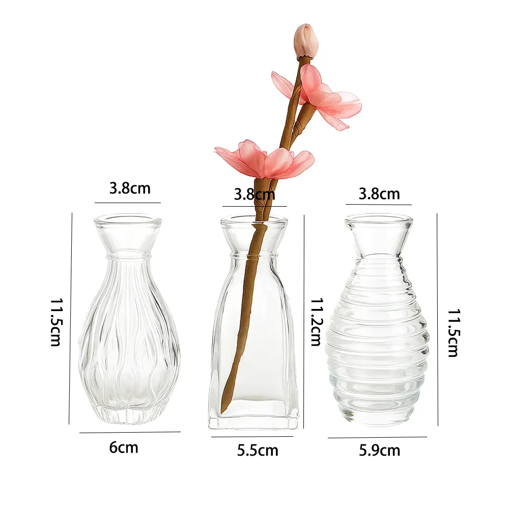 | Ribbed | 5.5 × 11.2 × 3.8 | Glass | Clear or Custom | Flowers, Succulents,Artificial Arrangements |