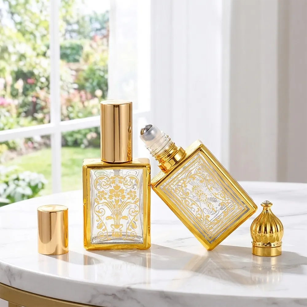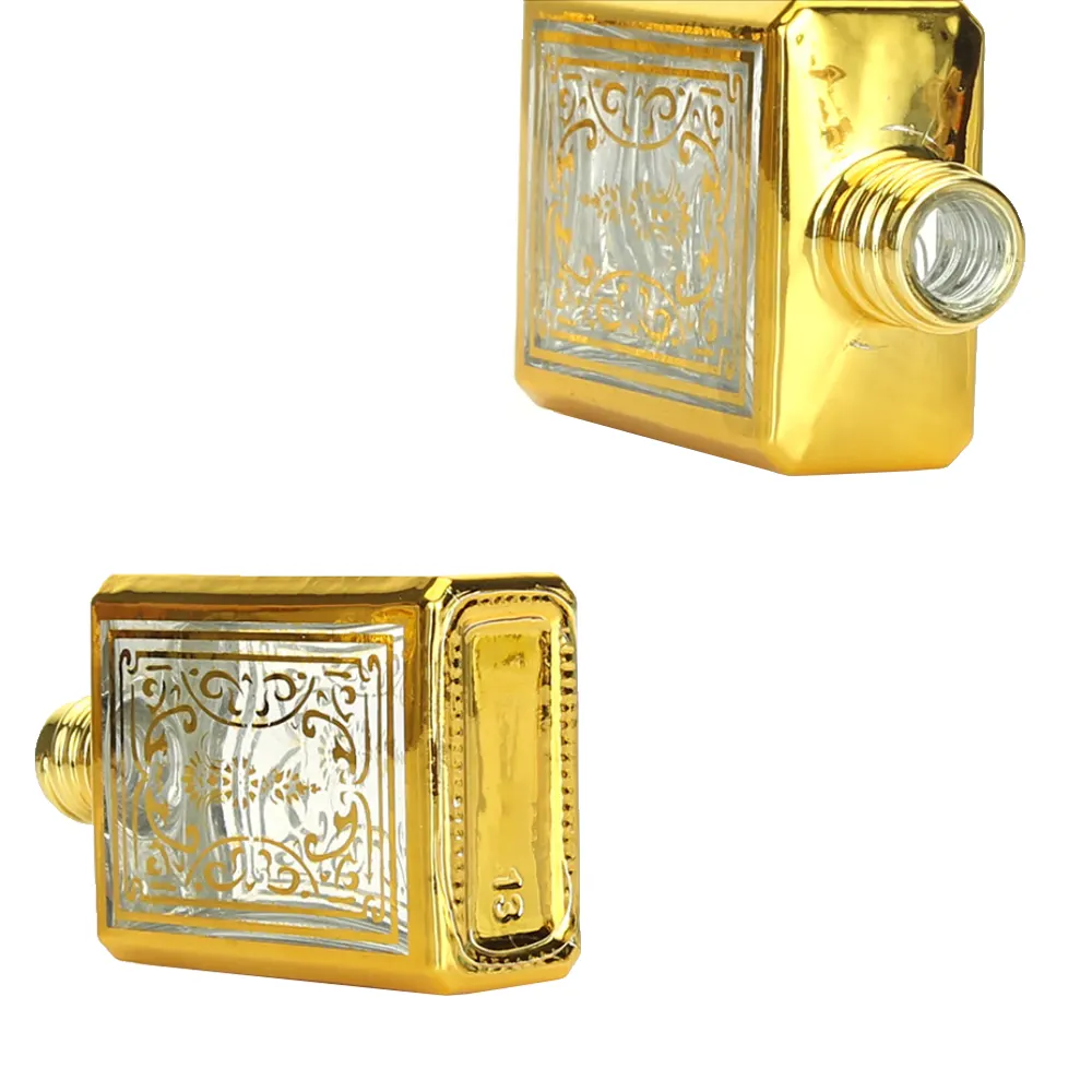 One of the fashionable perfume houses chose our rectangular, roller with gold-plated glass bearing bottle where they wanted some unique features. Their screen printing was also redesigned in order to represent their traditional Arabic style pattern such that the design is durable and does not fade away with time. They selected stainless steel roller bearings with tighter neck tolerances in order to avoid leakage during high-temperature international shipping. There was also a custom made crown cap that was designed and the brand logo was engraved on the top.