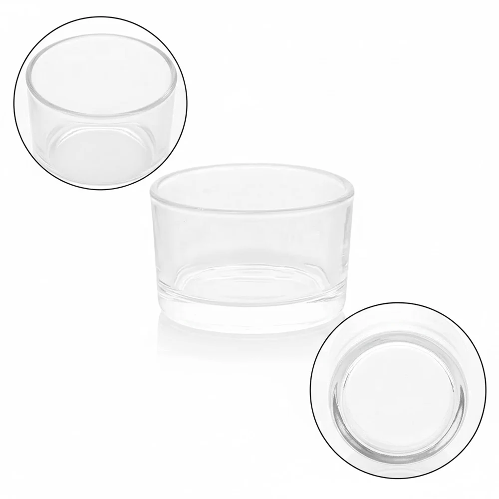 These small glass candle jars are designed with a simple and low profile cylindrical shape with a strong and thickened bottom to further provide stability.