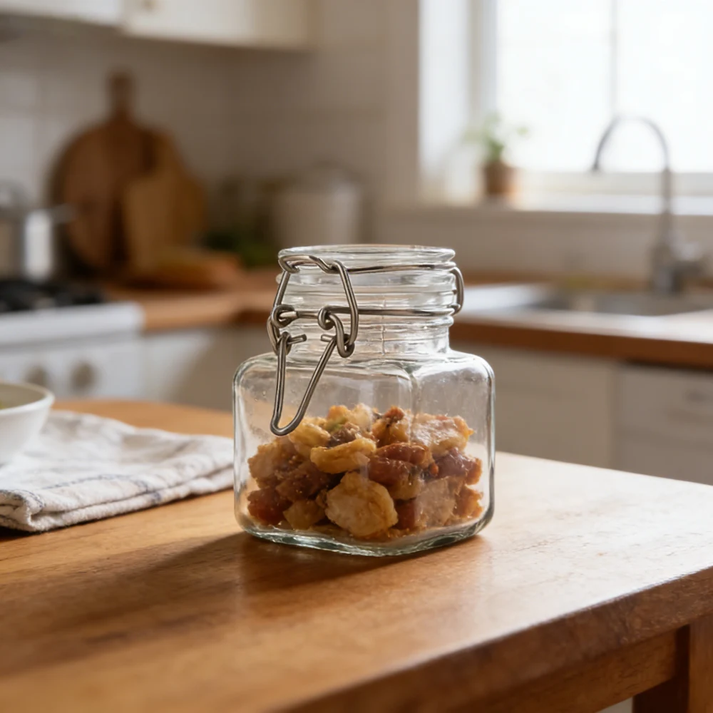 These are stylish and hermetic glass airtight jars that are noticeable among many airtight glass jars with a small capacity. At first, it is their compact, square, transparent glass bodies with rounded, smooth edges that attract your attention.
