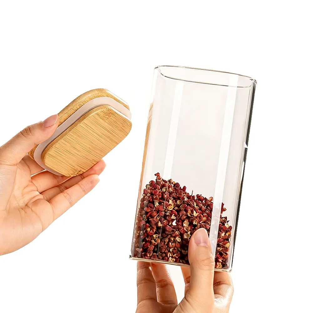 Details of this custom-made square, flat-mouth borosilicate glass storage jars can be flexibly changed depending on the target market and the usage scenario. As an illustration, a higher light transmittance borosilicate glass can be chosen and the wholesale glass jars dimensions can be optimized for making the shelf displays of food retail or gift box visually more neat and attractive; regarding the lid, along with the flat-mouth structure, various materials or colors of sealing rings and lid surface treatment can be changed to provide more brand recognition.