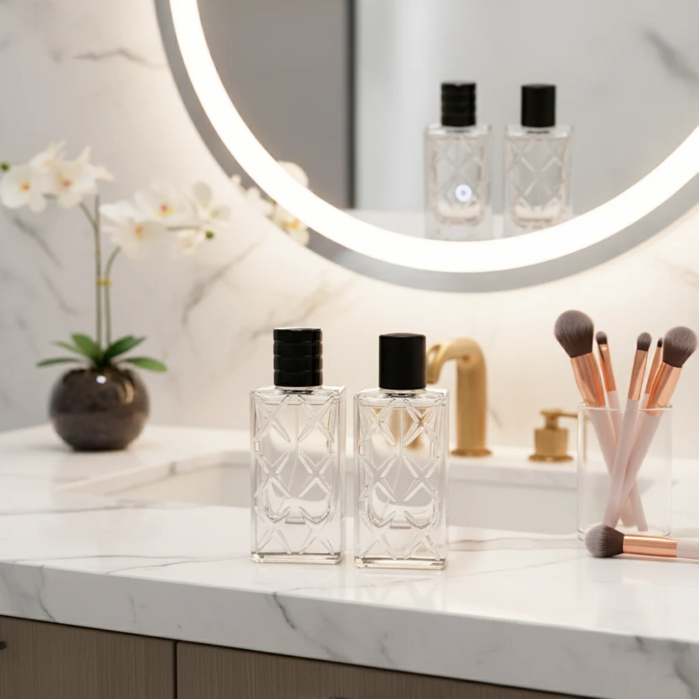 100ml Square Engraved Perfume Bottles with Black Lids Bulk