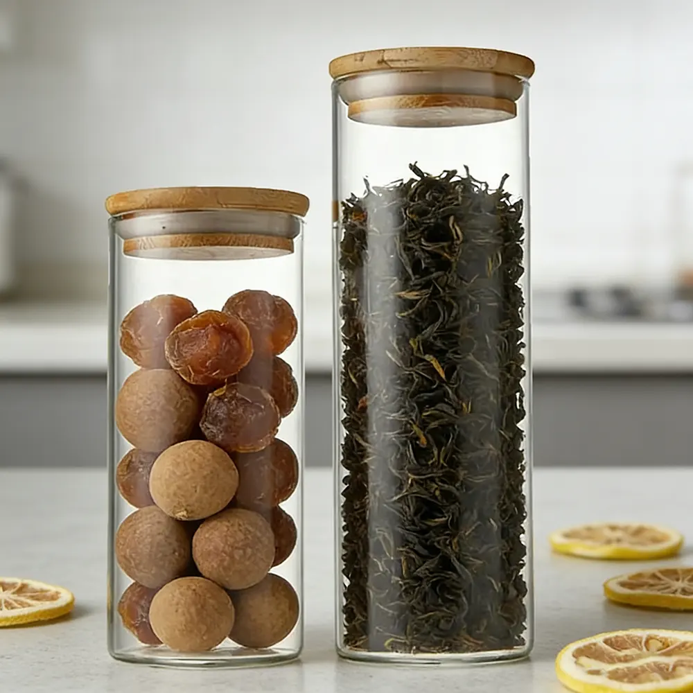 A food ingredient wholesaler, by means of these straight, sided, round, high, borosilicate glass storage jars, after the change, used them for the storage and display of large volumes of seasoning powders and dried goods. Due to their high transparency and large capacity, the visibility of the products in retail displays has been significantly improved, thus resulting in a 28% approximate increase of sales of similar SKUs within three months of their introduction.