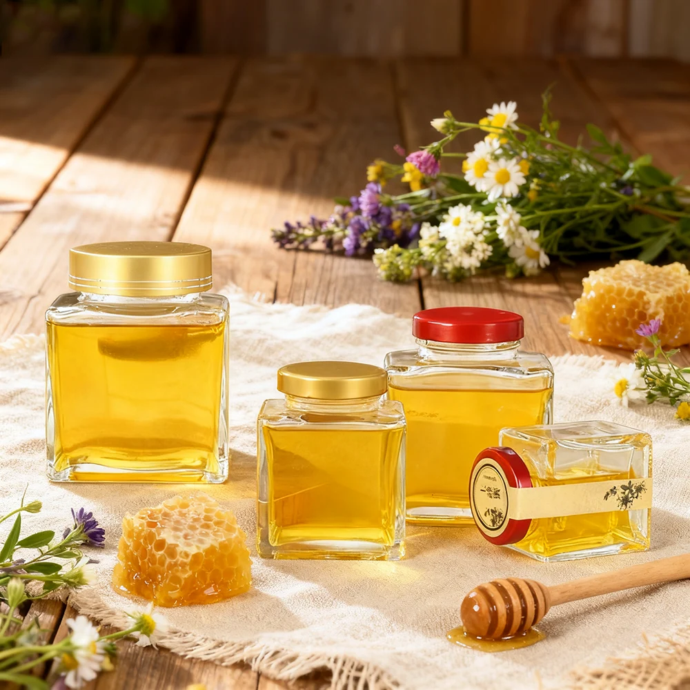 Wholesale Transparent Square Honey Jars with Metal Lids 100ml 180ml 280ml 360ml