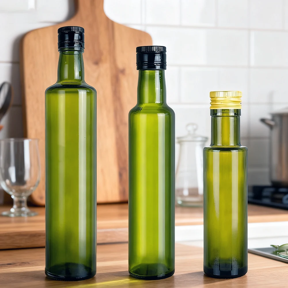 Wholesale Green Glass Olive Oil Dispensers with Metal Lids 250ml 500ml 750ml