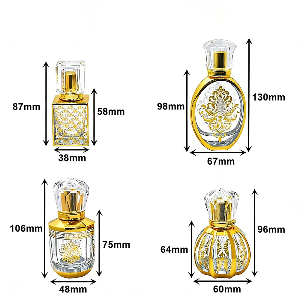 Esta marca de frascos de perfume de luxo é feita de vidro da mais alta transparência e está disponível em quatro formatos (abóbora, cilíndrico, quadrado e oval). Os frascos são decorados com belos padrões folheados a ouro nas tampas, que brilham intensamente à luz do sol.