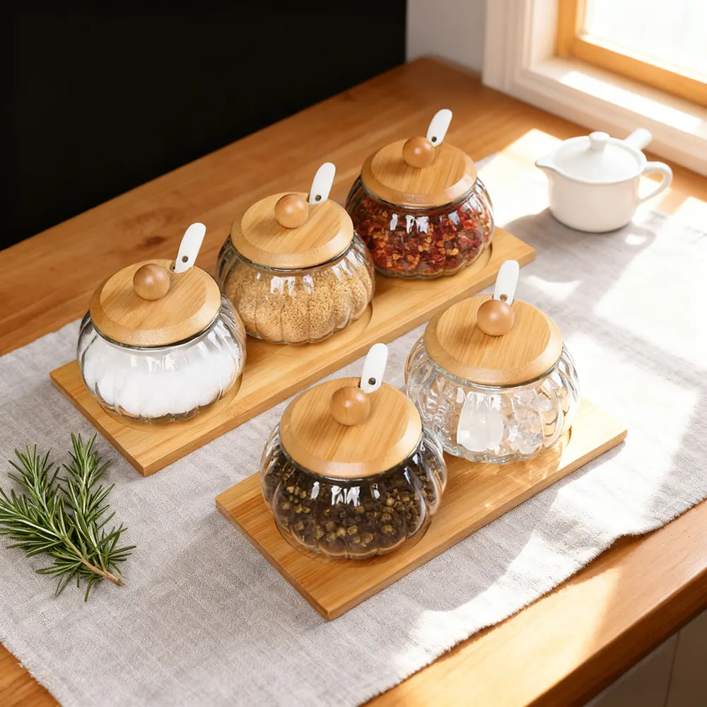 What a cute spice jar to promote your brand by a custom-made! Your logo or image can be laser-engraved on the bamboo lid, which will be a great combination of nature and your brand; or you can simply change the lid material to reflect your brand color like wood, colored bamboo, or metal and add versatile style. The glass part of the container is also available for customization with clear or frosted and different capacities for seasoning storage containers. Wrapped with a wooden base or a bamboo spoon set will simply raise the total look, thus a great solution for kitchen organization and the gifting industry.